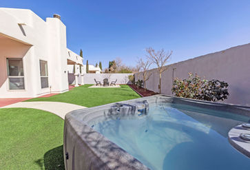 Unwind in the brand-new private hot tub, relax in stylish living spaces, and step outside to a quiet outdoor area for morning coffee or sunset chats. Whether you’re here for golf, family time, or desert adventures, this home sets you up for a seamless, comfortable stay.